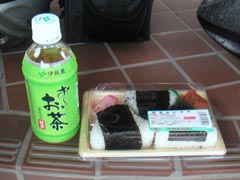 私達は庇のある役場の玄関前に陣取って昼食にしました。